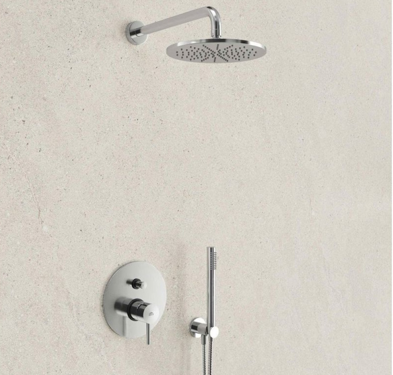- Термостатичні рішення: прихований монтаж ідеально поєднується з термостатами. Термостатичні змішувачі Paffoni автоматично підтримують задану температуру, нівелюючи перепади тиску у водопроводі. Це забезпечує безпеку (запобігає ошпарюванню) та комфорт, що є критичним при використанні верхнього душу.