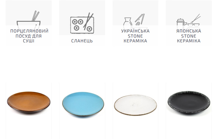 Фарфор і кераміка – основа. Фарфор щільний, не вбирає запахи. Кераміка дешевша, але треба перевіряти глазур – якщо шорсткувата, соєвий соус залишить сліди за тиждень активного використання. Дерево виглядає ефектно на фото, але васабі в’їдається в структуру, змінює колір. Бамбукові дошки для сашімі тримають форму максимум сезон при щоденному використанні – розбухають, тріскаються.